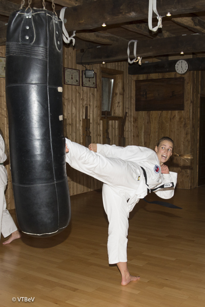Selbstverständlich kamen zum Schluss des Unterrichtes auch die im Dojang im Niekampsweg vorhandenen Sandsäcke zum Einsatz.