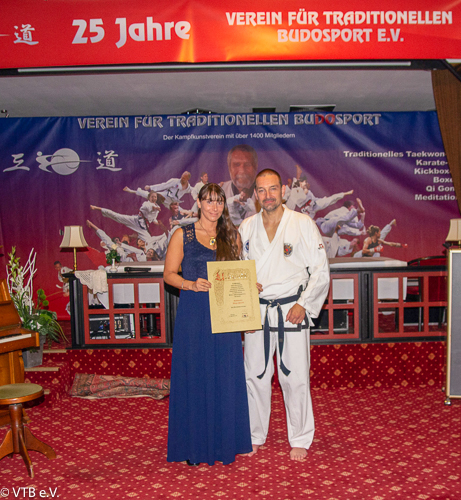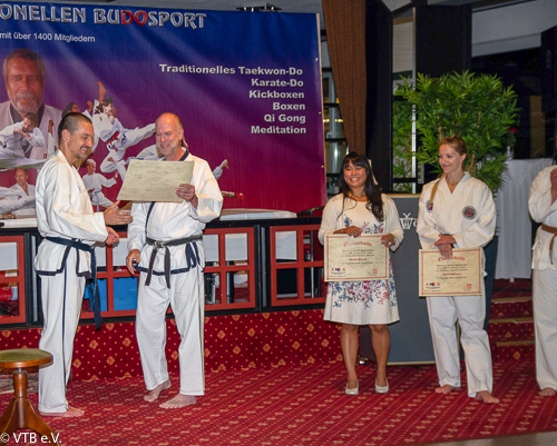 Bei der letzten Ehrung wurde die Person geehrt, ohne die diese Erfolge gar nicht möglich gewesen wären, der Cheftrainer und Manager des VTB, Großmeister Jürgen Paterok, 9. DAN. In Würdigung seiner außerordentlichen erfolgreichen Tätigkeit als Cheftrainer und seines uneigennützigen Einsatzes bei der Förderung von Breiten- und Leistungssportlern, wurde ihm diese Ehrenurkunde verliehen. Stellvertretend für Großmeister Jürgen Paterok nahm Kim Wilken die Urkunde entgegen.